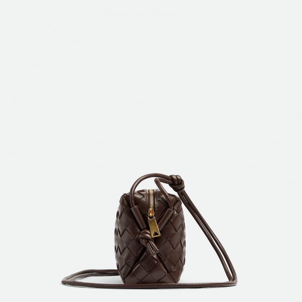 • Lining: Bonded suede Intrecciato • Colour: Travertine • Hardware: Gold finish • Height: 11 cm | 4.3" • Width: 17 cm | 6.7" • Depth: 6 cm | 2.3" • Strap drop: 50 cm | 19.7"