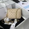 Chanel 23C AS1786 Mini Square Pearl Embossed Flap Bag Antique Gold Hardware Apricot