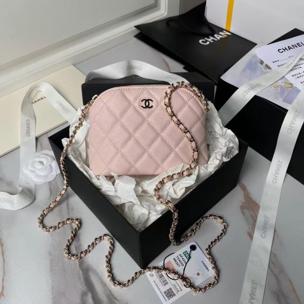 Chanel 23C AS1786 Mini Square Pearl Embossed Flap Bag Antique Gold Hardware Dark Pink