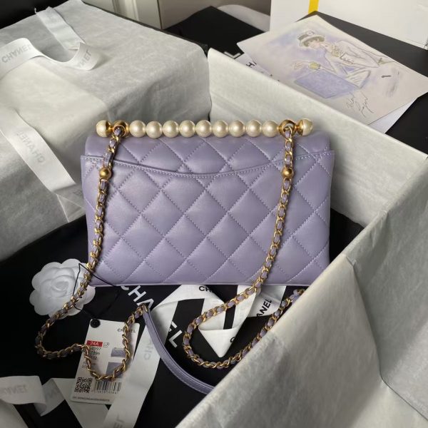 Chanel 23K AS1787 Mini Pearl Embossed Rectangular Flap Bag Lambskin Brushed Metal Hardware Blue