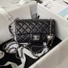 Chanel 23K AS1787 Mini Pearl Embossed Rectangular Flap Bag Lambskin Brushed Silver Metal Hardware Black