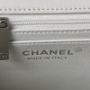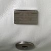 The interior is lined with white leather and features a zippered pocket with Chanel zipper and an open pocket underneath.