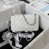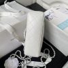 Chanel 23K AS1787 Mini Pearl Embossed Rectangular Flap Bag Lambskin Brushed Silver Metal Hardware White