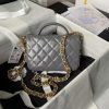 Chanel 24A AS4992 Mini Shiny Lambskin Flap Bag with Top Handle Grey