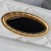 This exquisite Chanel evening bag captivates with its elegant design and luxurious details. The pure black body, reminiscent of a starry night, is both simple and sophisticated. The intricate diamond pattern and iconic gold double-C logo exude understated luxury, while the unique handle adds a touch of charm and playfulness. The classic black and gold combination makes it a perfect accessory for evening events and formal attire.