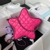 Measurements: 8.8 × 8.8 × 2.3 in / 22.5 × 22.5 × 6 cm This Chanel CC Star bag is in fuchsia satin fabric with black tone metal hardware and black leather trimming. It features an exterior back slip pocket, dual zip top closure and an interwoven black metal chain link and pink satin leather shoulder strap. The interior is lined in fuchsia grossgrain canvas and black leather with two open slip pockets on each wall.