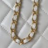This CC shoulder bag features white lambskin with antique gold hardware, tonal stitching, circular construction, large antique gold CC buckle that folds over the front top of the bag.