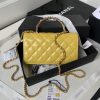 New Chanel 24p Top Handle Woc Pearl Handle Gold Embossed Double C Button Shiny Crinkled Lambskin Yellow