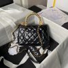 Chanel AS2215 Mini Flap Bag With Metal Top Handle Shiny Calfskin Black