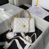Chanel AS2215 Mini Flap Bag With Metal Top Handle Shiny Calfskin White