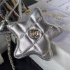 Chanel AS4647 Mini Flap Bag With Star Coin Purse Metallic Calfskin & Gold Metallic Silver