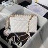 Chanel AS4997 Flap Bag Top Handle Shiny Lambskin Imitation Pearl & Gold Metal White