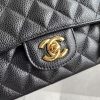 This medium classic double flap bag is crafted in black caviar leather with gold hardware, signature CC turnlock closure on the front flap, half-moon back pocket, adjustable interwoven gold chain and black leather shoulder strap.