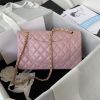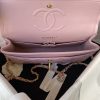 This medium classic double flap bag is crafted in dark pink lambskin with light gold hardware, front flap with signature CC turnlock closure, half-moon back pocket, adjustable light gold interwoven chain and dark pink leather shoulder strap.
