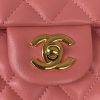 This medium classic double flap bag is crafted in dark pink lambskin with light gold hardware, front flap with signature CC turnlock closure, half-moon back pocket, adjustable light gold interwoven chain and dark pink leather shoulder strap.