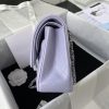 This medium classic double flap bag is crafted in light purple lambskin with silver hardware, front flap with signature CC turnlock closure, half-moon back pocket, adjustable interwoven silver chain and light purple leather shoulder strap.