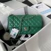 This medium classic double flap bag is crafted in green lambskin leather with silver hardware, featuring the signature CC turnlock closure on the front flap, half-moon back pocket, adjustable interwoven silver chain and green leather shoulder strap.