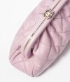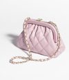 This Chanel Cloud Bag is made of pink lambskin with gold hardware, front CC logo in quilted satin, pink leather, top CC Kiss lock, interwoven gold-plated chain links and pink leather shoulder/crossbody strap