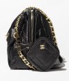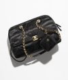 This travel bag is crafted from black velvet with antique gold hardware and features signature diamond quilting, signature CC turnlock closure, and zip fastening.
