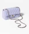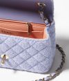This mini classic rectangular flap bag is made of purple tweed with gold hardware, front flap with CC turnlock closure, half-moon back pocket and interwoven gold chain links and purple leather shoulder/crossbody strap.