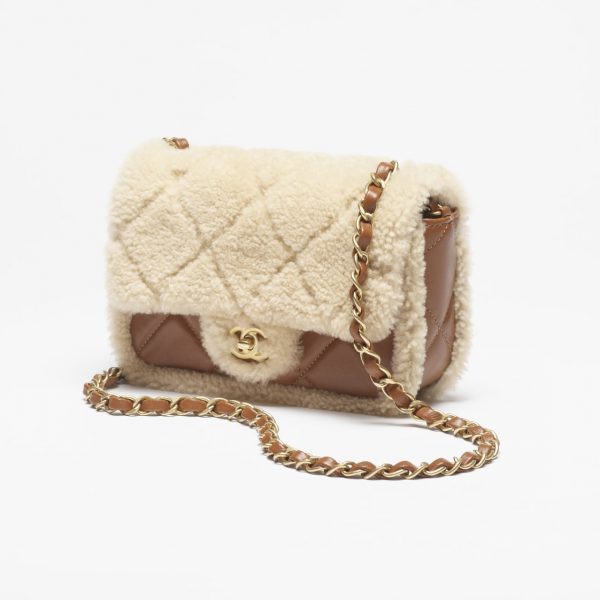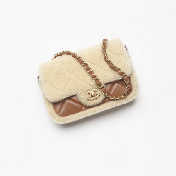 This Chanel Mini Flap Bag is crafted in light blue grained shiny calfskin with brushed gold hardware, front flap with CC turnlock closure, single interwoven brushed gold and black leather shoulder strap with two round CC coin charms.