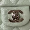 This small version of the classic double flap bag is crafted in light green caviar leather with silver hardware, front flap with signature CC turnlock closure, half-moon back pocket, adjustable interwoven silver chain and light green leather shoulder strap.