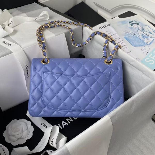 This small Classic Double Flap Bag is crafted in gradient grey lambskin with silver hardware, front flap with signature CC turnlock closure, half-moon back pocket, adjustable silver interwoven chain link and grey leather shoulder strap.