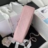 This small Classic Flap Bag is crafted in pink lambskin with silver hardware, front flap with CC turnlock closure, half-moon back pocket, adjustable interwoven silver chain and pink leather shoulder/crossbody strap.