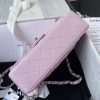 This small Classic Double Flap Bag is crafted in light purple lambskin with silver hardware, front flap with signature CC turnlock closure, half-moon back pocket, adjustable silver interwoven chain link and light purple leather shoulder strap.