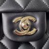 This small classic double flap bag is crafted in black lambskin with silver hardware, featuring the signature CC turnlock closure on the front flap, half-moon back pockets, adjustable silver interwoven chain links and a black leather shoulder strap.