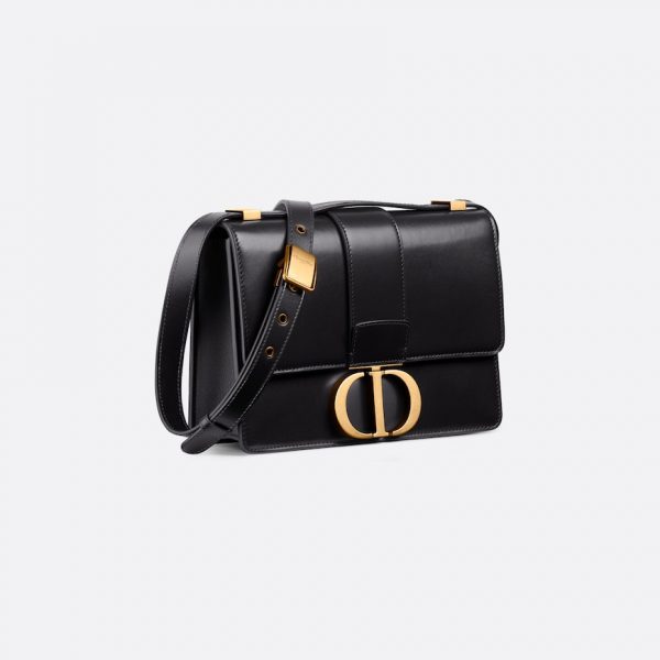The 30 Montaigne line is inspired by the emblematic address and offers essential pieces that embody the House's iconic codes. The bag is crafted in latte box calfskin for an elegant and modern look. The flap is embellished with an antique gold-finish metal CD clasp, inspired by the seal of a Christian Dior perfume bottle. Refined details such as an embossed 30 Montaigne signature on the back, define this unique design. Featuring an adjustable leather shoulder strap, the 30 Montaigne bag can be carried by hand, worn over the shoulder or crossbody.