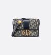 The 30 Montaigne line is inspired by the emblematic address and offers essential pieces that embody the House's iconic codes. The bag is crafted in blue Dior Oblique jacquard for an elegant and timeless look. The flap is embellished with an antique gold-finish metal CD clasp, inspired by the seal of a Christian Dior perfume bottle. Refined details such as an embossed 30 Montaigne signature on the back, define this unique design. Featuring an adjustable leather shoulder strap, the 30 Montaigne bag can be carried by hand, worn over the shoulder or crossbody.
