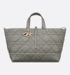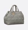 The Dior Toujours bag is distinguished by a casual and practical design. Crafted in stone gray calfskin with Macrocannage topstitching, it showcases a spacious interior compartment with a matching pouch to organize the essentials. Its thin leather strap closure keeps items secure while the D of the CD Lock clasp twists to adjust the sides and enhance the bag's silhouette. The leather handles can be adjusted using the small notches in order to be able to carry the large bag by hand or wear it over the shoulder.