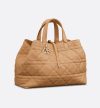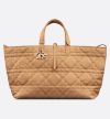 Unveiled at the Spring-Summer 2023 Fashion Show, the Dior Toujours bag is distinguished by a casual and practical design. Crafted in medium tan calfskin with Macrocannage topstitching, it showcases a spacious interior compartment with a matching pouch to organize essentials. Its thin leather strap closure keeps items secure while the D of the CD Lock clasp twists to adjust the sides and enhance the bag's silhouette. The leather handles can be adjusted using the small notches in order to be able to carry the large bag by hand or wear it over the shoulder.