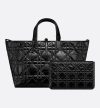 The Dior Toujours bag is distinguished by a casual and practical design. Crafted in black crinkled calfskin with Macrocannage topstitching, it showcases a spacious interior compartment with a matching pouch to organize the essentials. Its thin leather strap closure keeps items secure while the D of the CD Lock clasp twists to adjust the sides and enhance the bag's silhouette. The leather handles can be adjusted using the small notches in order to be able to carry the large bag by hand or wear it over the shoulder.