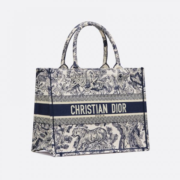 The Dior Toujours bag is distinguished by a casual and practical design. Crafted in blue Denim Dior Oblique jacquard, revisiting the House's iconic motif in a modern, irregular stonewashed effect, the model showcases a spacious interior compartment with a matching pouch to organize the essentials. Its thin leather strap closure keeps items secure while the D of the CD Lock clasp twists to adjust the sides and enhance the bag's silhouette. The leather handles can be adjusted using the small notches so the large bag can be carried by hand or worn over the shoulder.