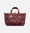 The Dior Toujours bag is distinguished by a casual and practical design. Crafted in burgundy calfskin with Macrocannage topstitching, it showcases a spacious interior compartment with a matching pouch to organize the essentials. Its thin leather strap closure keeps items secure while the D of the CD Lock clasp twists to adjust the sides and enhance the bag's silhouette. The leather handles can be adjusted using the small notches in order to be able to carry the medium bag by hand or wear it over the shoulder.