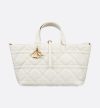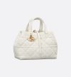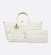 Unveiled at the Spring-Summer 2023 Fashion Show, the Dior Toujours bag is distinguished by a casual and practical design. Crafted in latte calfskin with Macrocannage topstitching, it showcases a spacious interior compartment with a matching pouch to organize essentials. Its thin leather strap closure keeps items secure while the D of the CD Lock clasp twists to adjust the sides and enhance the bag's silhouette. The leather handles can be adjusted using the small notches in order to be able to carry the medium bag by hand or wear it over the shoulder.