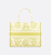Introduced by Maria Grazia Chiuri, Creative Director of Christian Dior, the Dior Book Tote has become a staple of the Dior aesthetic and is part of the Dioriviera capsule. Designed to hold all the daily essentials, the style is fully embroidered with the Toile de Jouy Soleil motif in lemon yellow, offering a new take on the House icon layering suns and crescent moons into a floral pattern representing the four seasons. Exemplifying House savoir-faire, the medium tote is adorned with the Christian Dior Paris signature on the front. It can be carried by hand or worn over the shoulder.