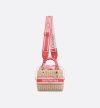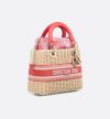 Part of the Dioriviera capsule, the Lady Dior bag epitomizes Dior's vision of elegance and beauty. Sleek and refined, the timeless style exemplifies House savoir-faire with hand-woven natural wicker. It features leather top handles and an interior drawstring pouch in coral Toile de Jouy jacquard. The embroidered Christian Dior Paris band is inspired by the Dior Book Tote, while pale gold-finish metal D.I.O.R. charms illuminate the silhouette. Equipped with a thin removable shoulder strap, the medium Lady Dior bag can be carried by hand or worn crossbody.