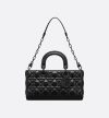 The Lady D-Joy bag captures the House's vision of elegance and beauty by showcasing the iconic streamlined aesthetic of the Lady Dior line. Constructed in black crinkled calfskin with Cannage stitching, its quilted texture is immediately recognizable. Ultra-matte metal D.I.O.R. charms add a modern touch. Featuring one removable chain strap and another adjustable and removable leather strap, the medium Lady D-Joy bag can be carried by hand, worn over the shoulder or crossbody as a daily companion.