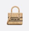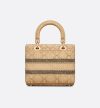 The Lady D-Lite bag combines classic elegance with House modernity. Crafted in natural raffia, it showcases hallmark Cannage stitching. A Christian Dior Paris signature adorns the front, while D.I.O.R. charms in pale gold-finish metal further enhance and highlight the silhouette. Featuring a wide, removable and reversible embroidered shoulder strap, the medium Lady D-Lite bag can be carried by hand or worn crossbody.