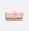 The My Dior - Dior Talk Phone Pouch is a clever and sophisticated creation. Crafted in powder pink Cannage lambskin, it features pale gold-finish metal D.I.O.R. charms. Completed by an elegant removable chain punctuated with resin pearls, the phone pouch can be carried by hand, worn over the shoulder or crossbody.