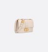 The bag enhances the 30 Montaigne line with a timeless and elegant design crafted in dusty ivory calfskin. The flap has an antique gold-finish metal CD clasp, inspired by the seal of a Christian Dior perfume bottle. Other details, like the embossed 30 Montaigne signature on the back and the military-inspired buckle, highlight the streamlined design. Featuring an adjustable leather shoulder strap, the small 30 Montaigne bag can be carried by hand, worn over the shoulder or crossbody.