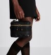 The DiorTravel vanity case is crafted in black supple lambskin and showcases shiny antique gold-finish metal details. It is enhanced by Cannage topstitching and a band embossed with the Christian Dior signature. The design can accommodate a phone, a wallet, a case for wireless earphones and a notebook. The small accessory is an ideal daily companion and can be carried by hand, worn over the shoulder or crossbody thanks to its handle and removable shoulder strap.