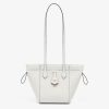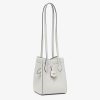 Mini Origami bag made of white full-grain leather. The style recalls the dual nature and creativity of Fendi with an innovative design that can be transformed: the ingenious closure with eight magnets means the bag can be folded, origami-style, transforming it from a bucket bag – when the magnets come together in the middle with a magic clasp – into a shopper by gently pulling up the short shoulder straps on each side. It comes with a key case charm with the word Fendi in metal. Lined inner compartment and gold-finish metalware. It can be carried by hand or worn on the shoulder thanks to 2 leather handles.