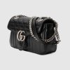 The Gucci Aria collection is an exploration of the House's most emblematic codes and symbols. The GG Marmont is synonymous with its matelassé leather and monogram hardware. Here, the small shoulder bag is reimagined with a new geometric take on its signature finish that combines vertical and diagonal motifs.