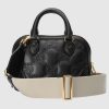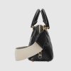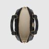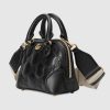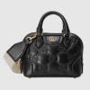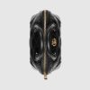 Matelassé leather is a signature material of the House, thanks to its super soft finish. The textured GG motif defines a selection of handbags, including this black leather bag. The Double G hardware decorates the front, continuing the logo feel of the design.