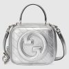 The Round Interlocking G that characterizes the Gucci Blondie line originates from the House archives. Signature pieces such as this top handle bag in metallic silver leather reinterprets the emblem as a subtler leather patch detail. Complete with additional shoulder strap for more versatile ways to wear.