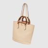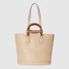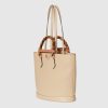 The Gucci Diana line takes a bamboo tote from the House's 1990s archive and pens a new narrative of reinvention. Crafted in soft leather in new pastel shades for Cruise 2024, its capacious design doubles as a shoulder bag and top handle bag, with two leather handles that can be folded into the interior.